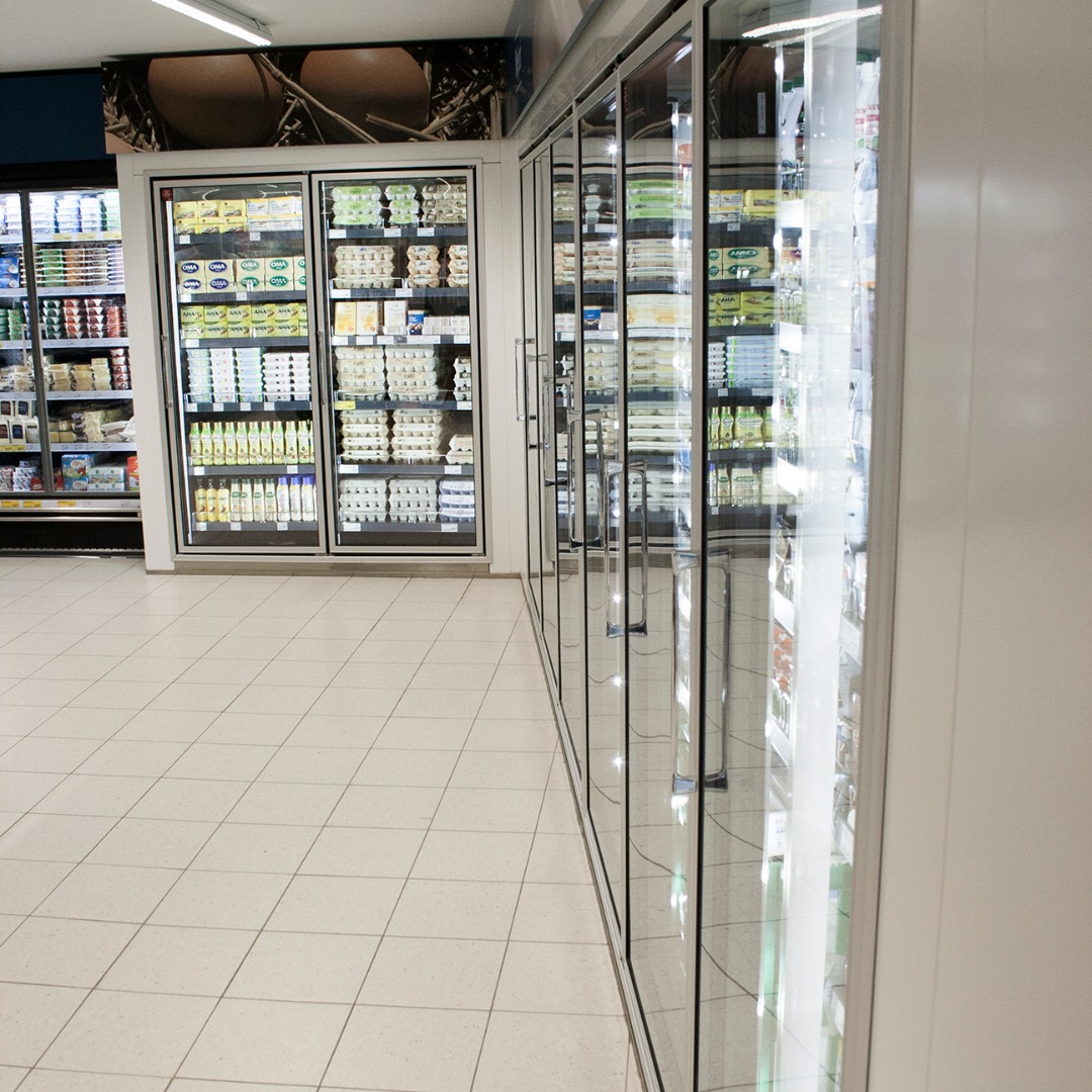 Til supermarkeder og relaterede brancher tilbyder vi komplette ”walk-in” køle- og fryserum. Derudover dimensionerer og sammensætter vi nøglefærdige kompressorløsninger til drift af både frost- og kølelinjer.