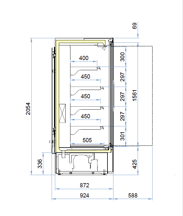 | Udv. mål - H x D | 2054 x 924 mm |