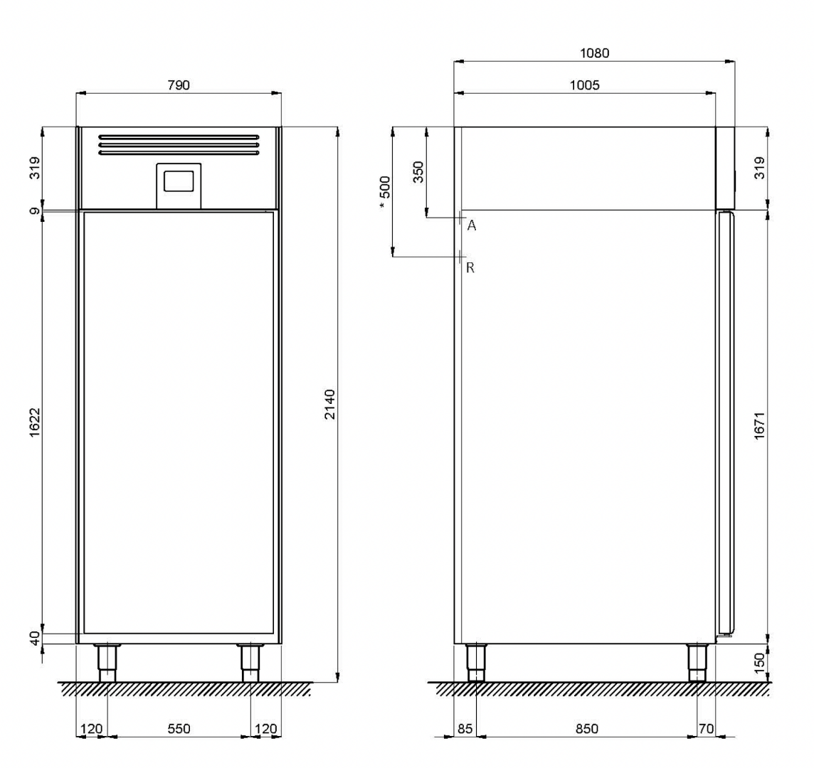 | Udv. mål - L x D x H | 790 x 1080 x 2140 mm |
