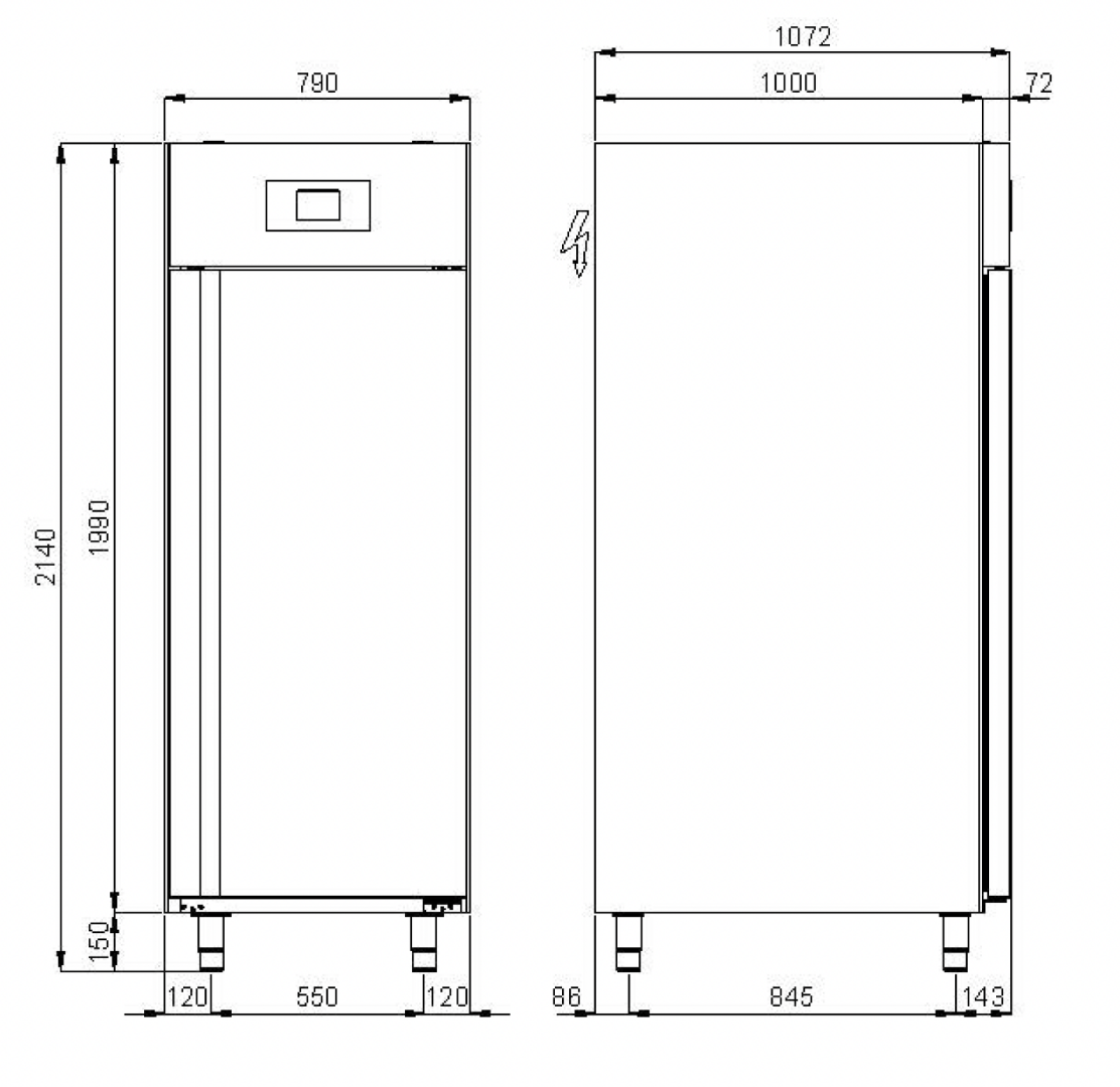| Udv. mål - L x D x H | 790 x 1080 x 2140 mm |