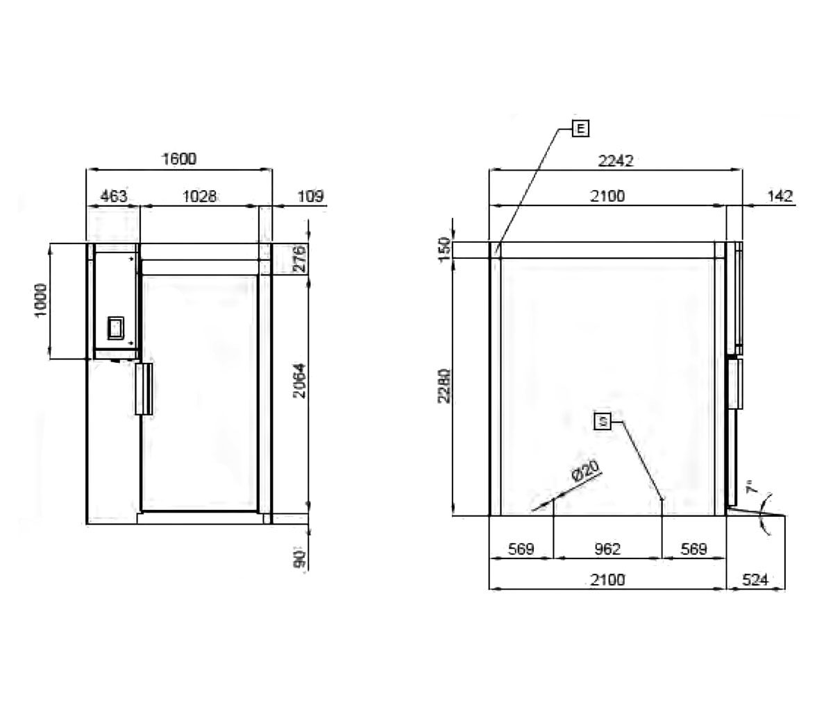 | Udv. mål - L x D x H | 1600 x 2250 x 2430 mm |