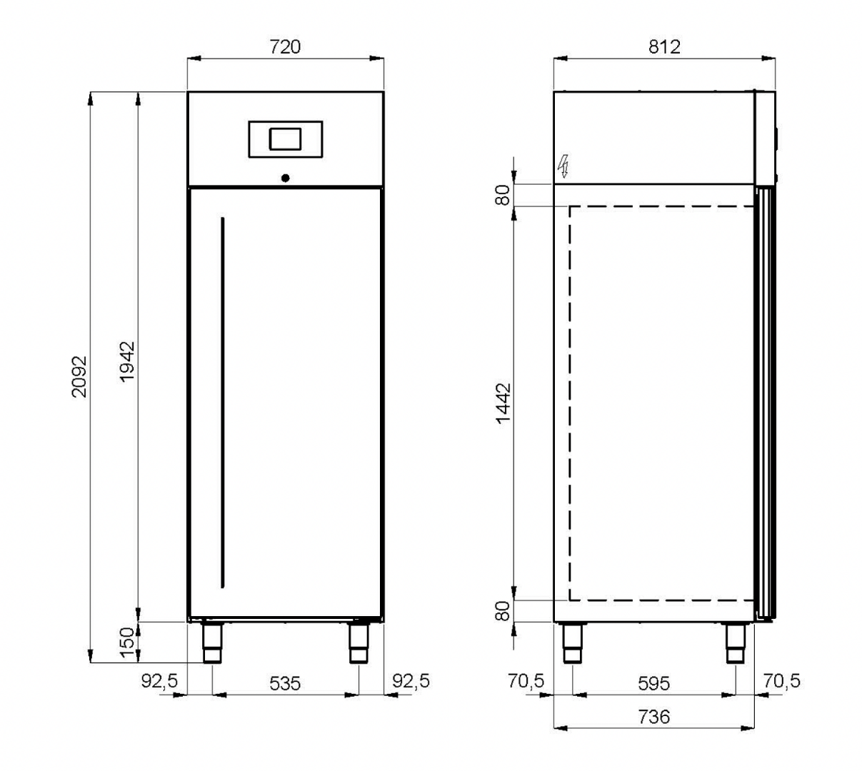 | Udv. mål - L x D x H | 720 x 812 x 2092 mm |