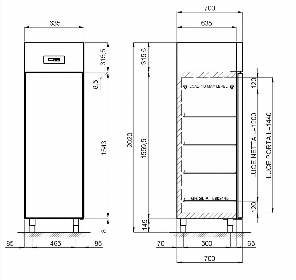 | Udv. mål - L x D x H | 635 x 700 x 2020 mm |