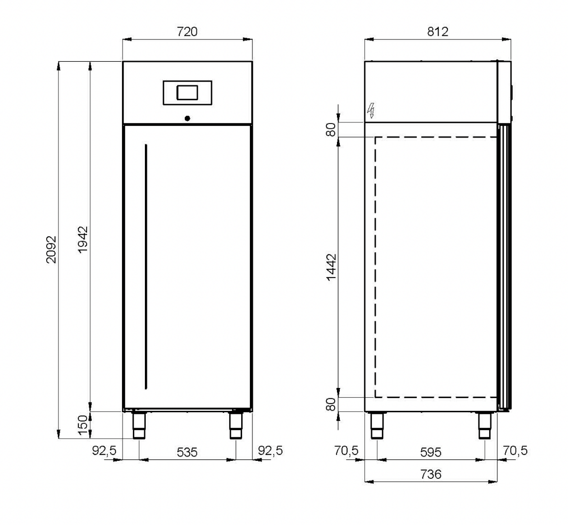 | Udv. mål - L x D x H | 720 x 812 x 2092 mm |
