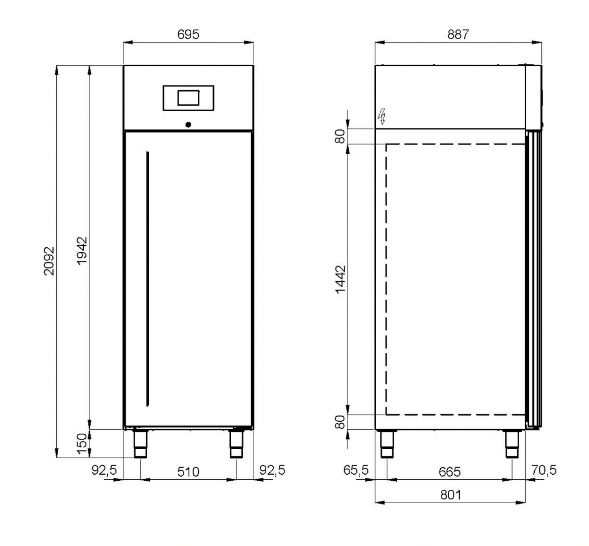 Udv. mål - L x D x H 695 x 887 x 2092 mm