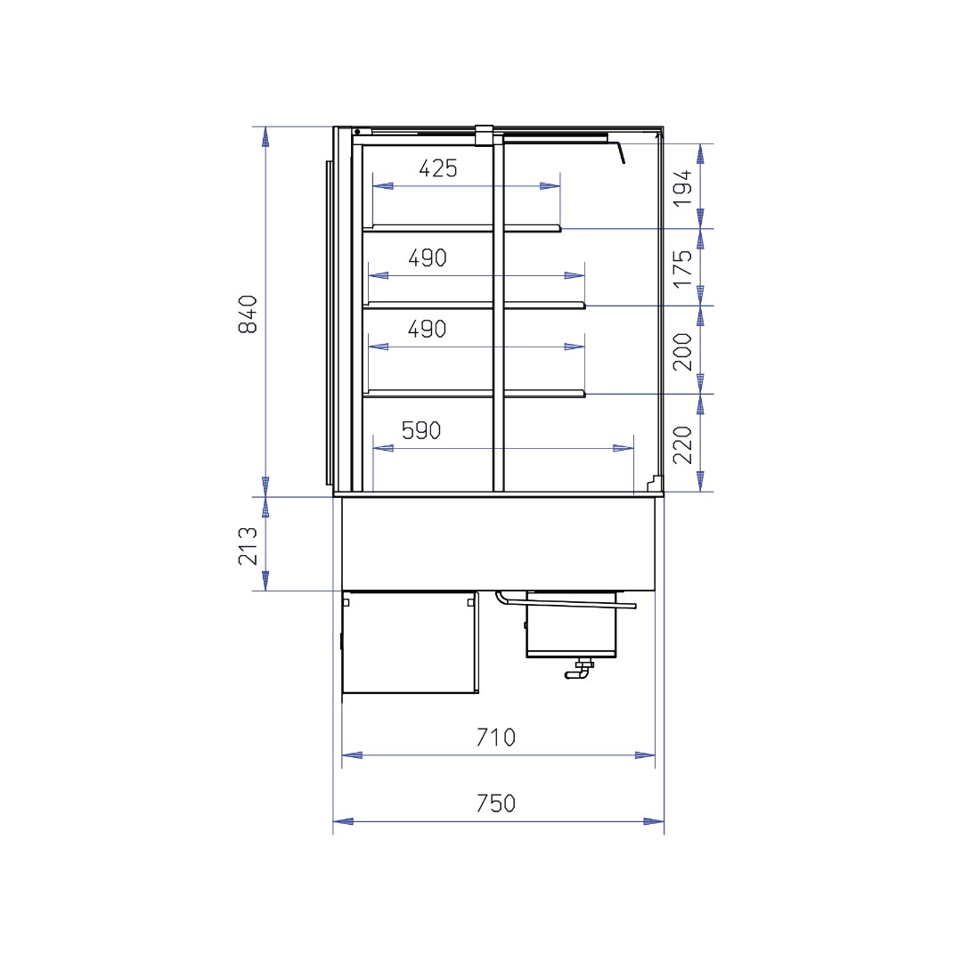 | Døre | Skydedøre bagved til betjening |